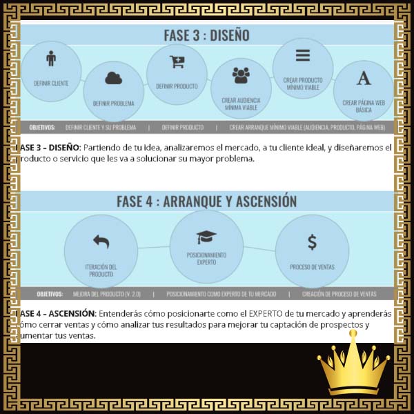 - FASE 3: Diseño y Prototipado de Ganancias (La Construcción): Aprenderás el orden correcto de la creación de negocios: primero defines el precio y la estrategia de ventas, y luego construyes el producto. Esto garantiza que tu oferta sea rentable desde el lanzamiento.